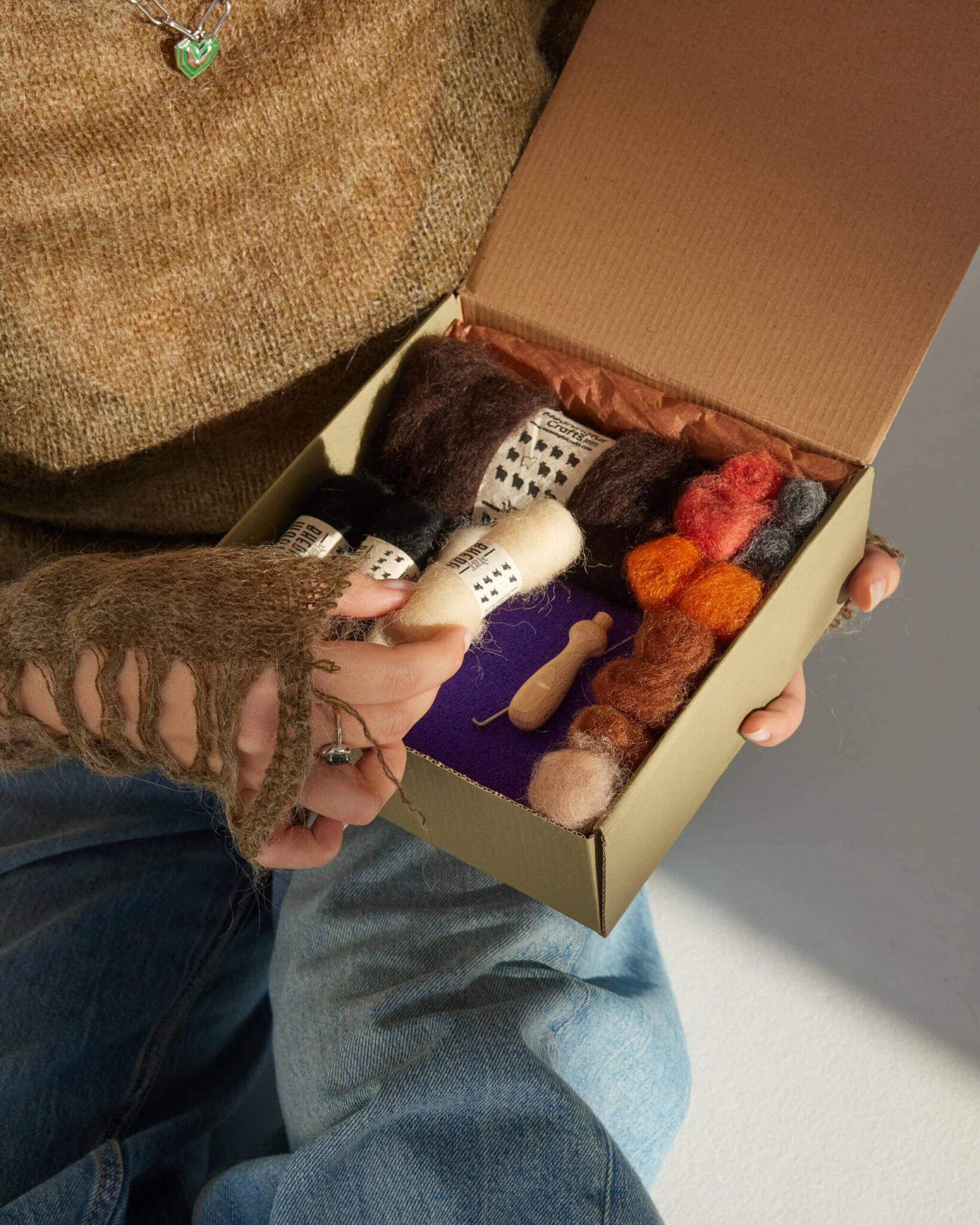 - Houten Viltnaaldhouder: Voor comfortabele en stabiele grip.
